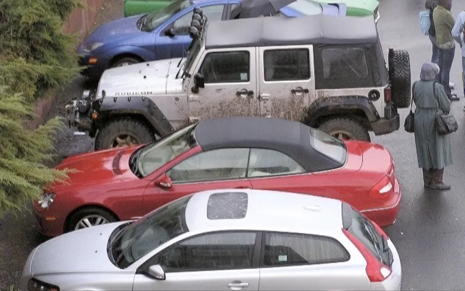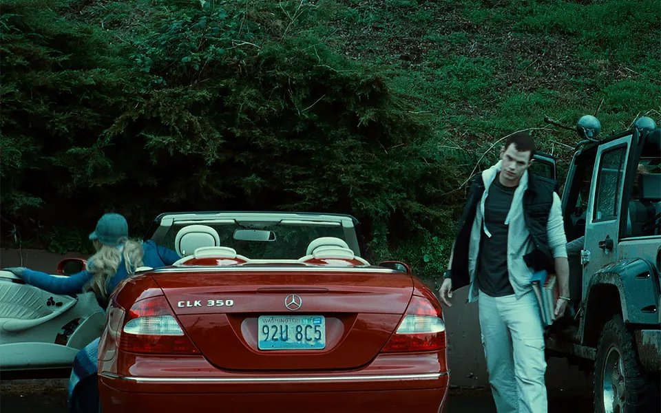 As preparation for filming began in this parking lot, Kalama HS seniors had to vacate for the duration of filming, about 4-5 weeks, including spring break. One day, Hollywood showed up. A procession of cars, some props including a green Pinto car, began rolling into the parking lot. Most vehicles were driven by ordinary people, but others, like a beautiful red convertible, were driven by people who clearly were “Hollywood Stars”. Top down, sunglasses on. The red convertible was driven to the location by Rosalie. Throughout filming, all the major stars drove the cars in the movie, to and from their hotel. Emmitt’s Jeep Rubicon showed up often, with what looked like a fresh coat of mud splattered on the sides. In one scene filmed in this location, Edward is standing here looking at Bella, who is at her truck just before the crash. During filming, a scene was repeatedly shot 10-15 times with Edward running across to save her. The shot never made it into the movie, though hours were wasted trying to get it to work.