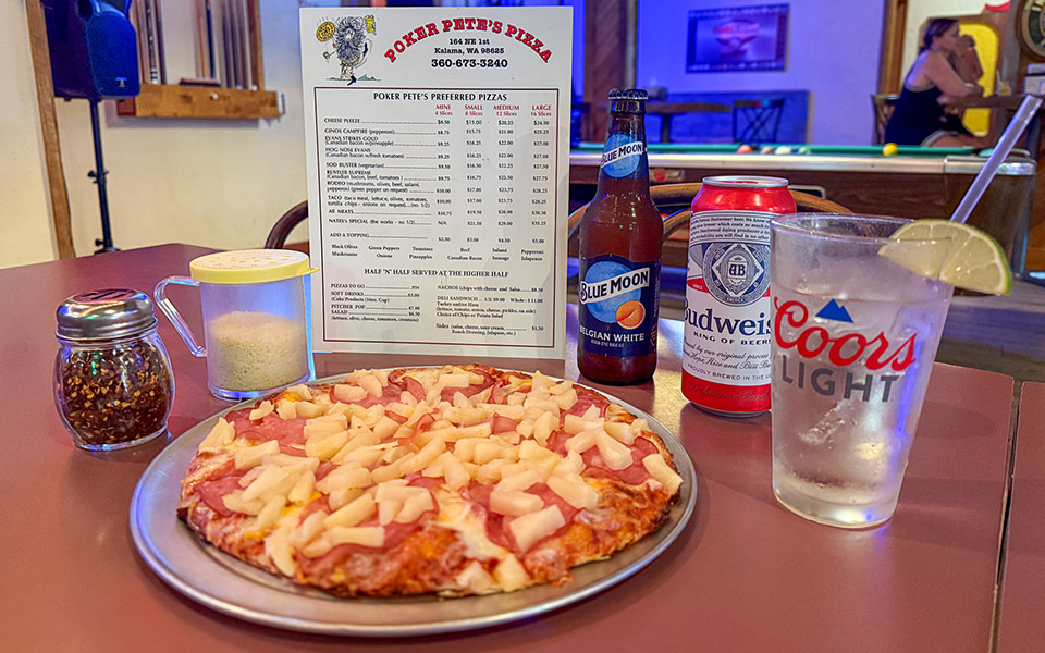 Serving downtown Kalama since 1985, the cozy tavern or small-town pizza parlor will fill your needs of the day. Share a plate of nachos with your group or partake in local tradition and enjoy a classic pizza in the parlor. Adults can head next door to the tavern and enjoy beer and booze while playing shuffleboard