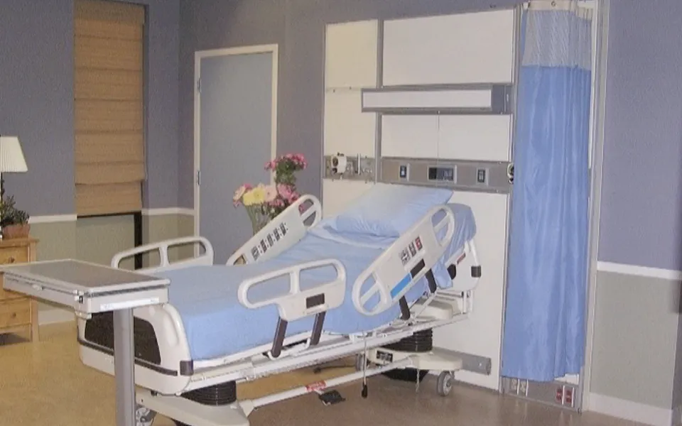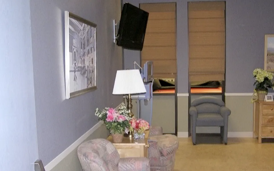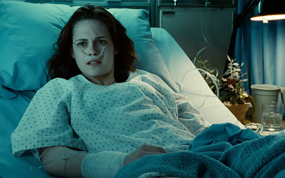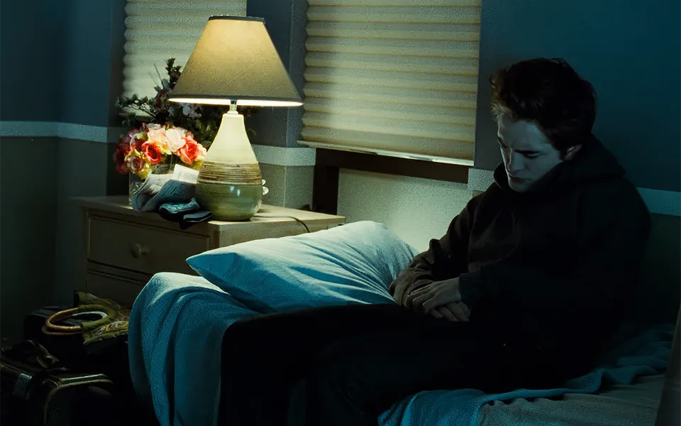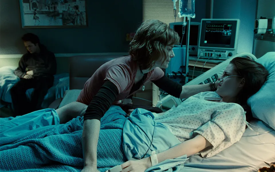 Twilight was filmed during March and April in Kalama, which meant a rainy spring and limited space for covered and enclosed areas. The director inquired about a space to build filming sets. It was lucky that wrestling season was over, and this space was offered to the director. A set was built in the centre of the room for the filming of the second hospital scene in Twilight. The orange and black mats were rolled up, and that allowed extra space for electrical equipment and props to be stored in a dry space. In the scene in the hospital, Edward is sitting in a chair with a window behind him. The blinds are closed. If they were open, those orange mats would be clearly visible just outside the window.